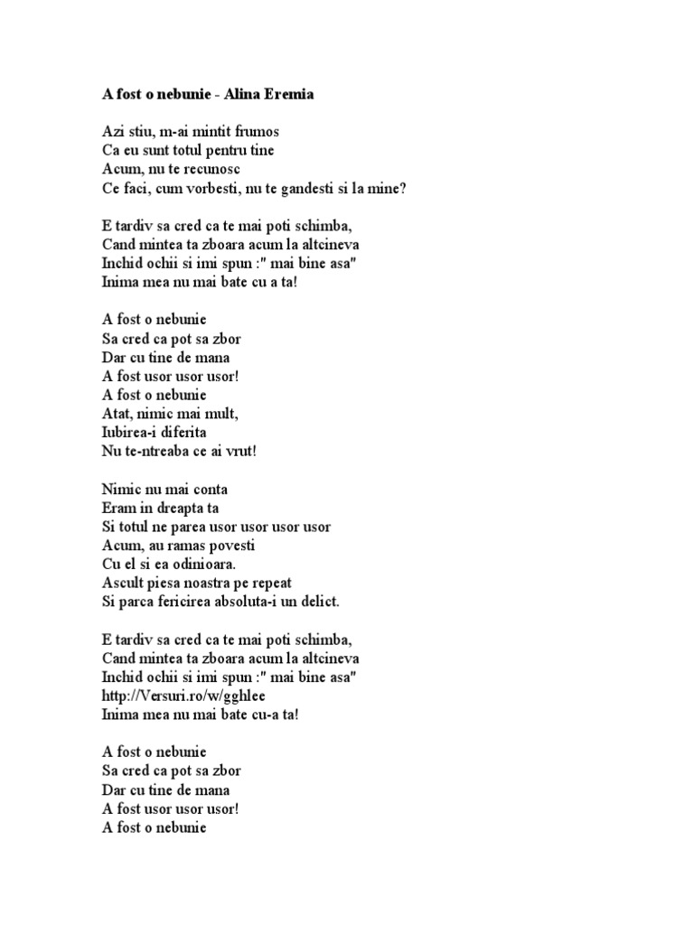 A Fost O Nebunie Alina Eremia Last Fm