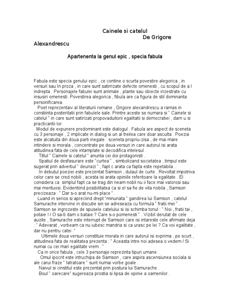 Fisă De Lectură Cainele Si Catelul Gr Alexandrescu