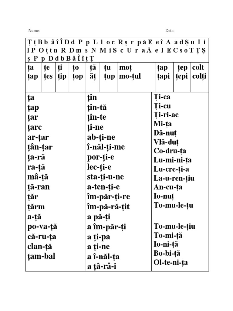 Fisa Citire Cuvinte 3 Silabe Clasele Primare Media Art Web