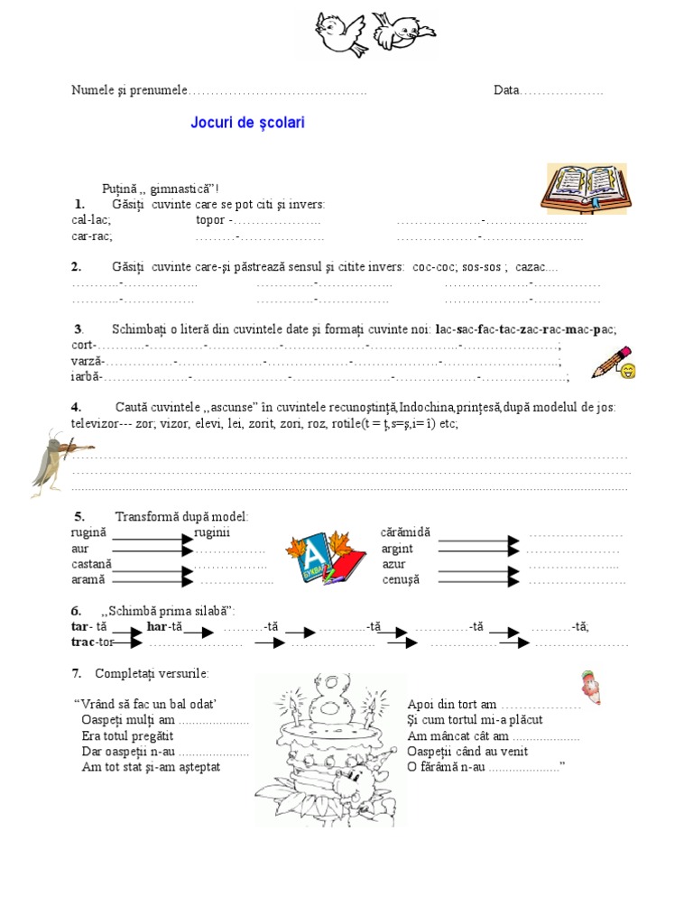 Formeaza Cuvinte Din Silabele Urmatoare Find The Match