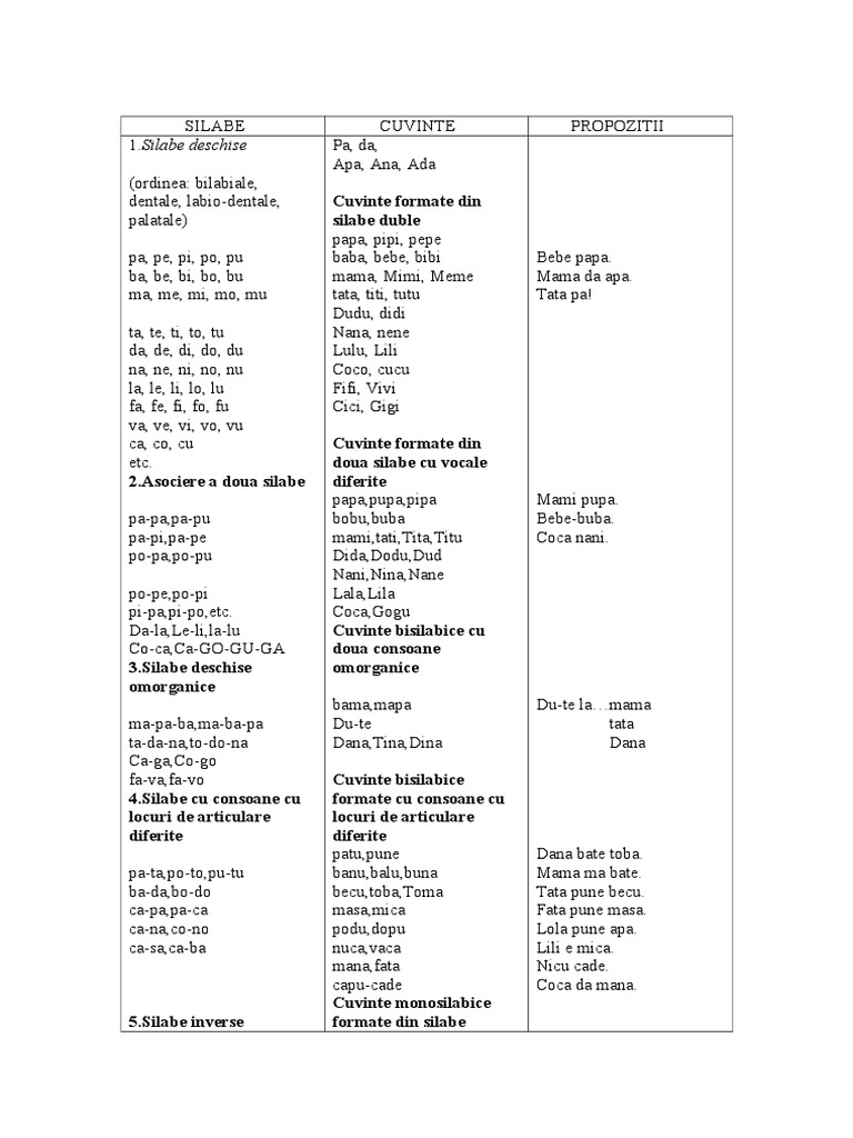 Silabe Cuvinte Propozitii
