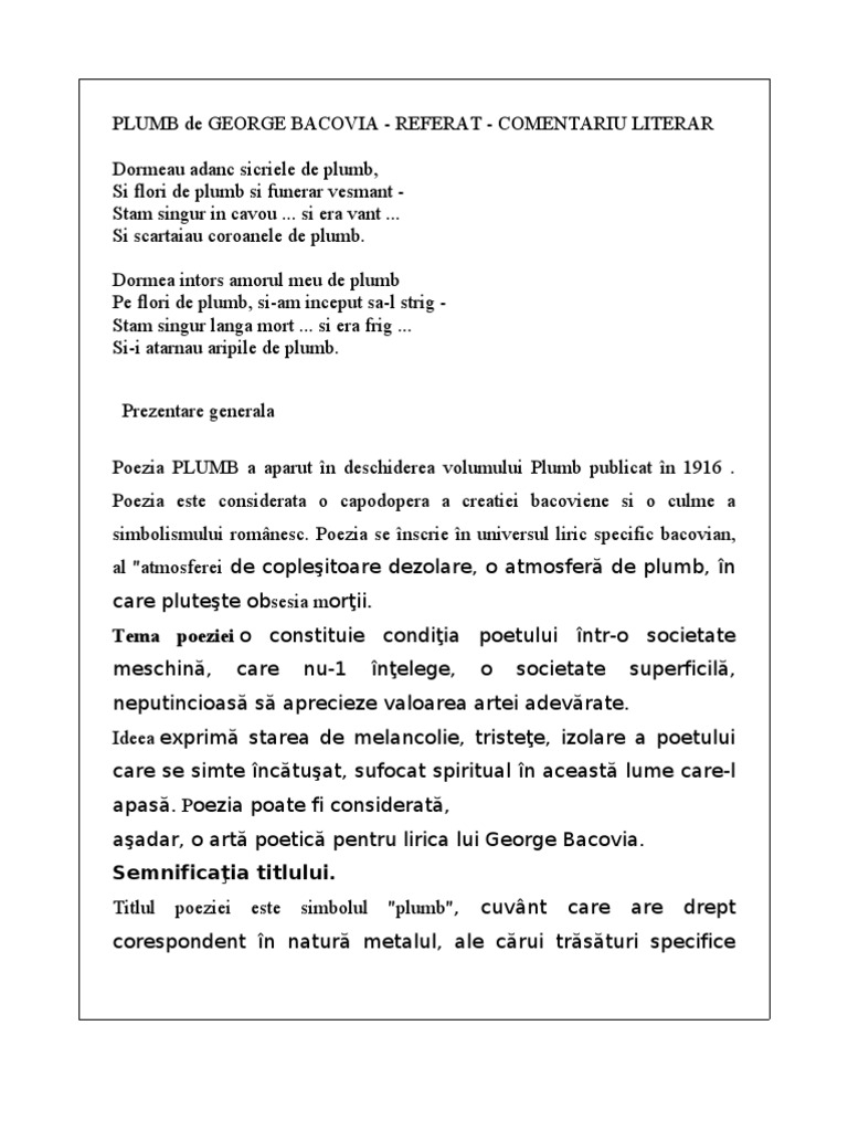 Referat George Bacovia Plumb Comentariu 329165 Graduo