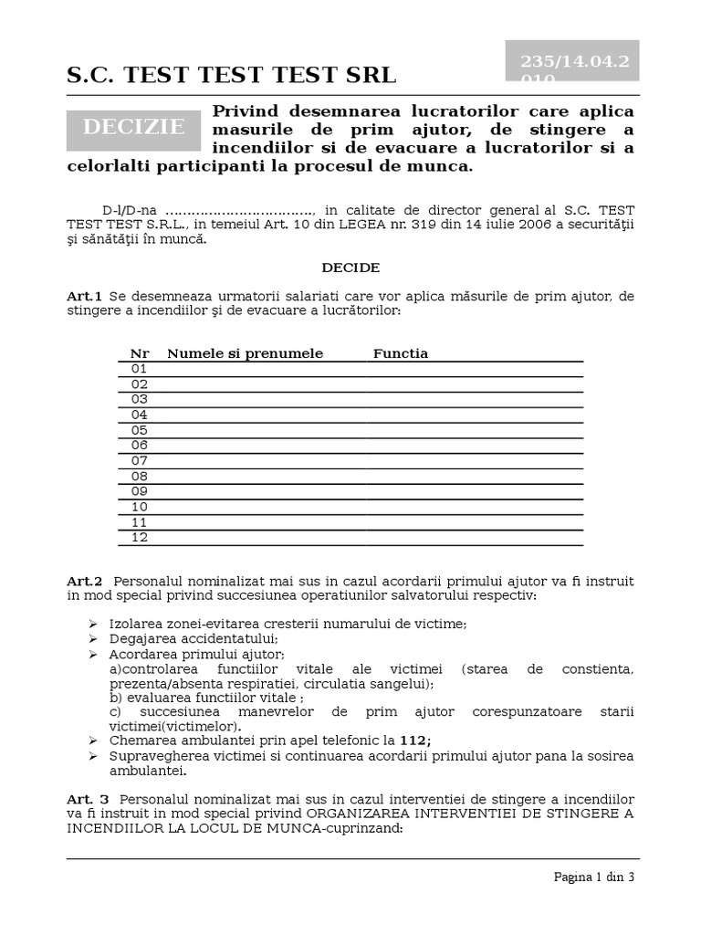 Decizie Privind Desemnarea Lucratorilor Care Aplica Masurile De