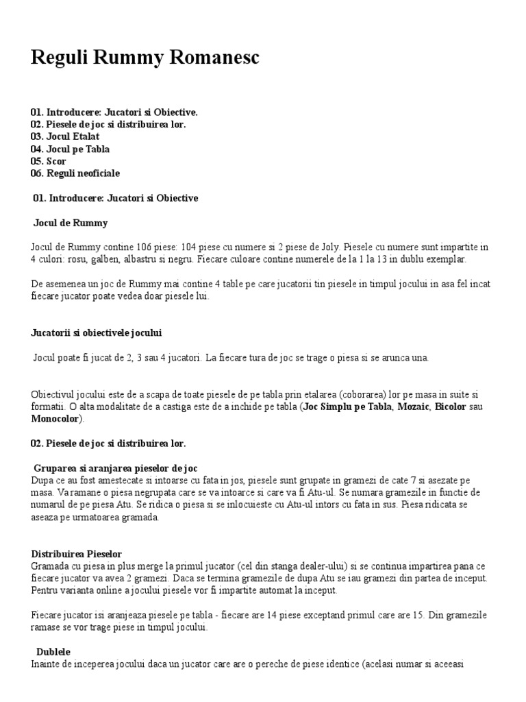 Reguli Rummy Romanesc