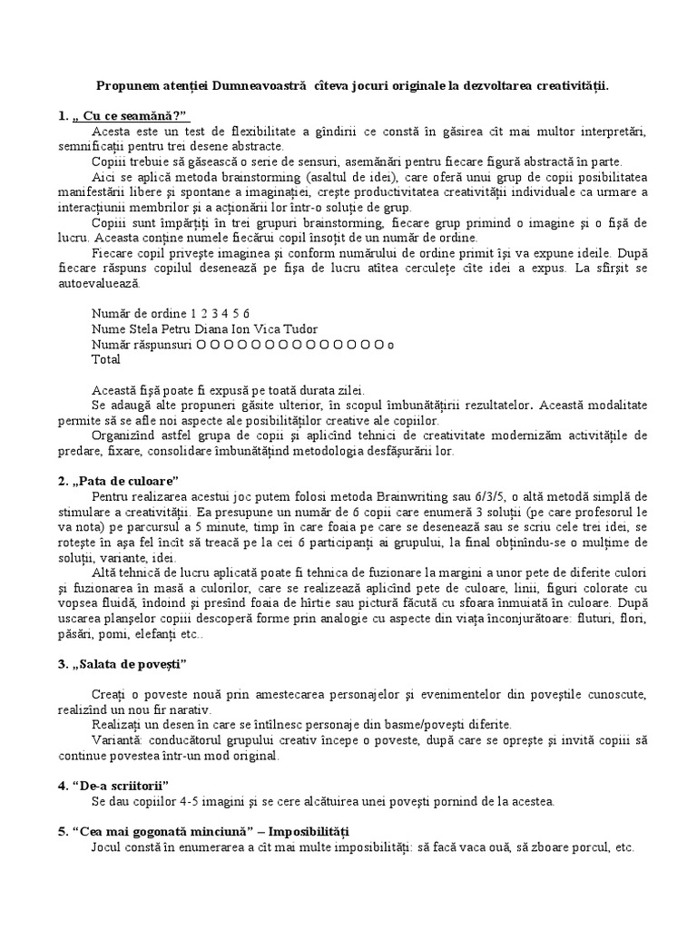 Jocuri Pentru Dezvoltarea Inteligentei Si Creativitatii Copiilor