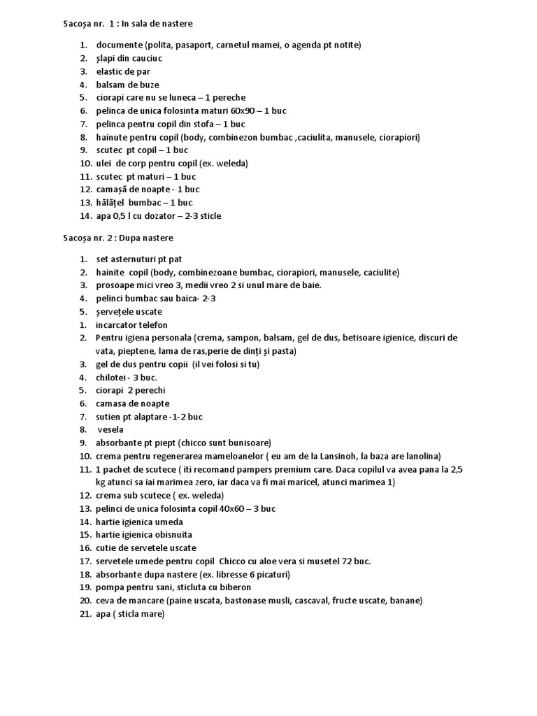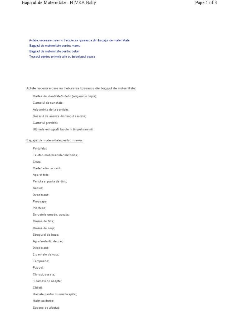 Lista De Bagaj Lista Bagaj Maternitatea