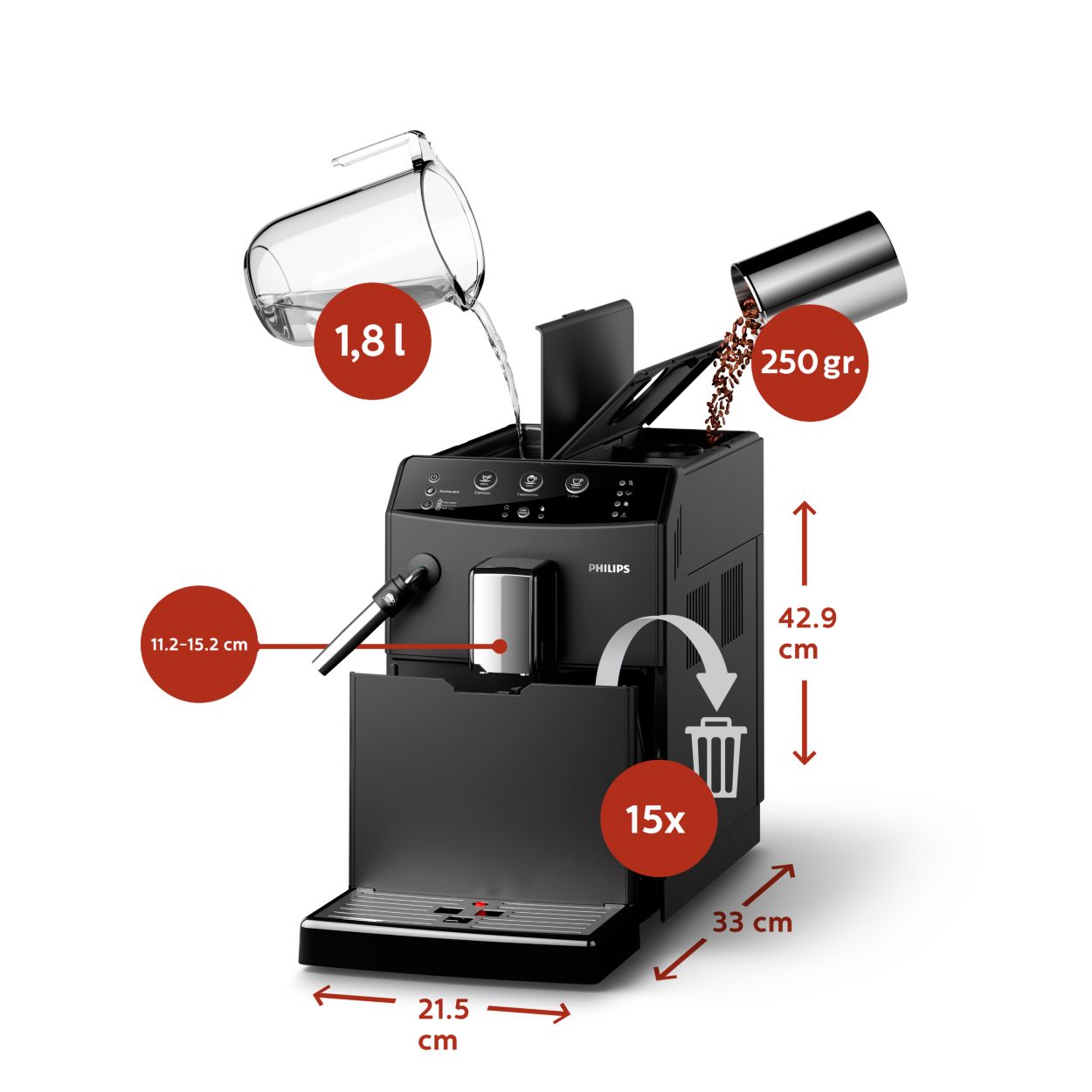 Espressor Automat Philips Hd8821 09 1850w 15 Bar 1 8 L Negru