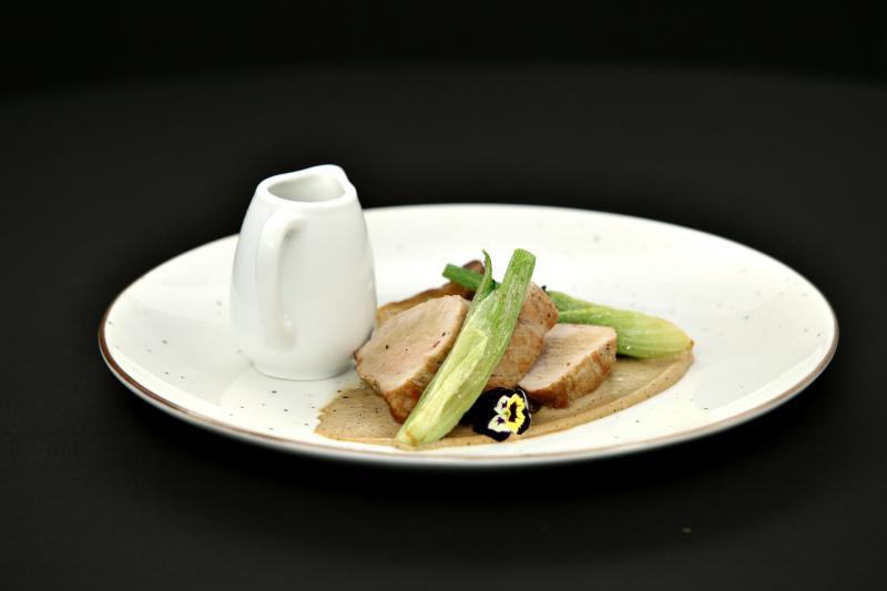 Friptură Aromată De Porc Cu Piure Cu Ghimbir și Sos De Ceapă