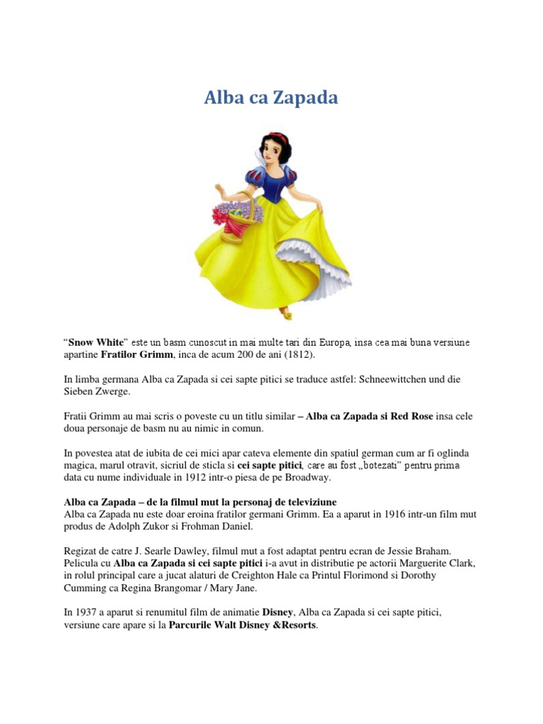 Alba Ca Zapada Si Cei Sapte Pitici Limba Romana La Copilul