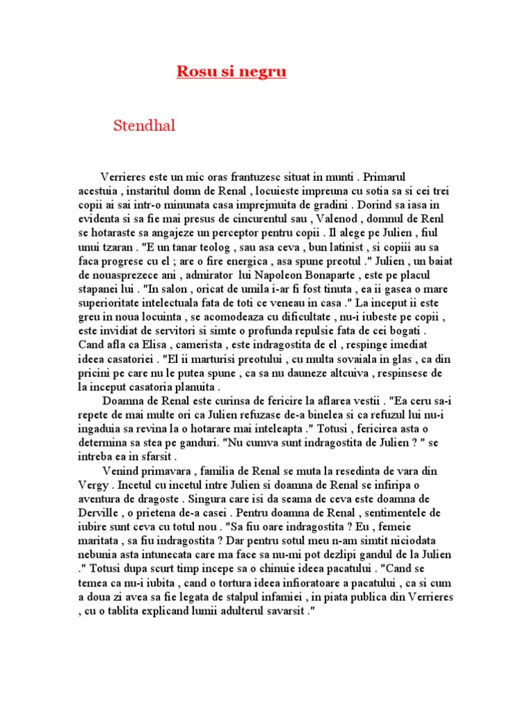 Referat Rosu Si Negru De Stendhal Rezumat Famouswhy Ro